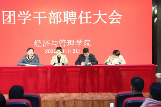 会议在庄重的国歌中正式开始。张丹院长宣读了学院《关于任命娄齐峰等62名同学为2020-2021学年团学干部的决定》,并为本届团学干部颁发聘书。