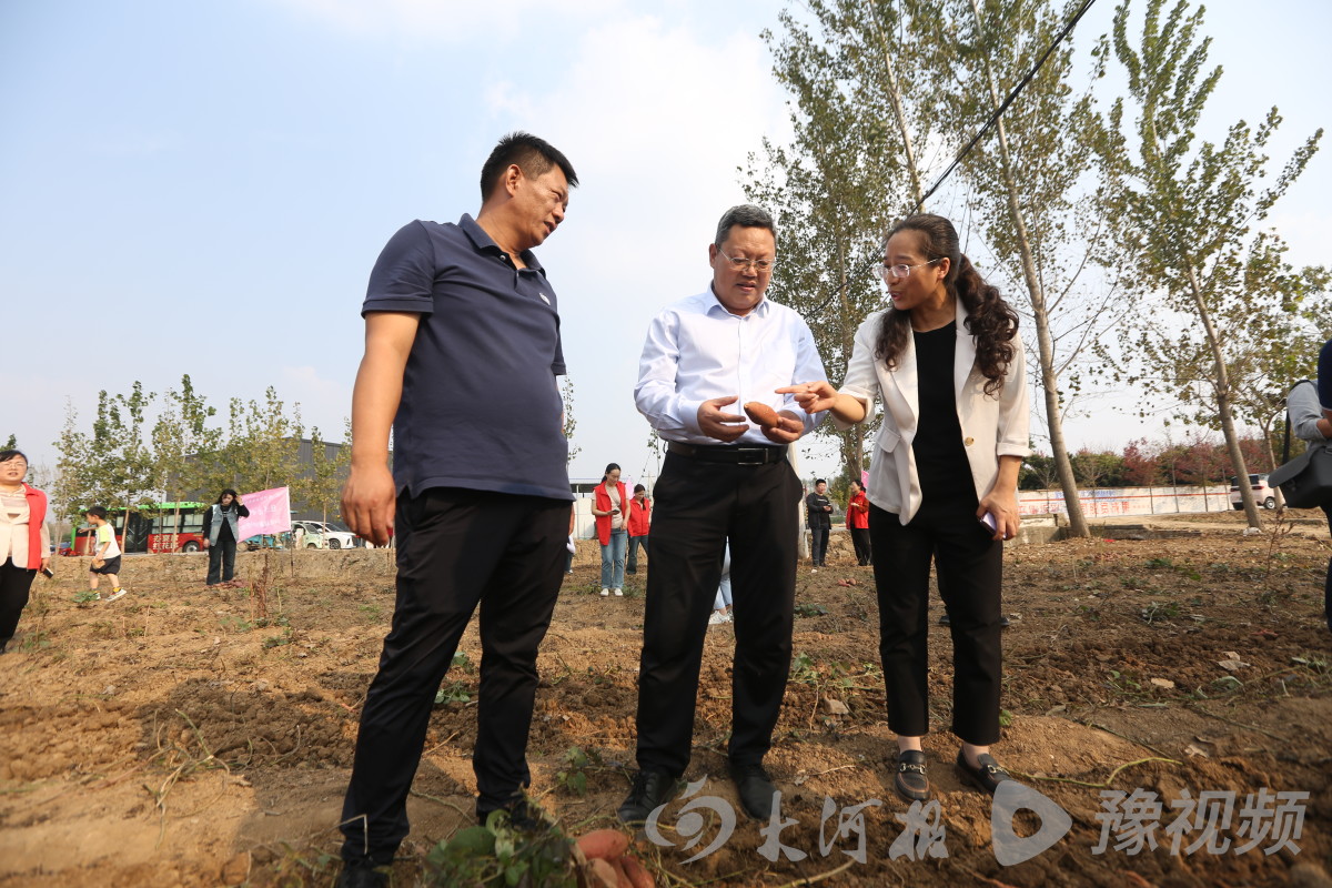 同学们在蜜薯地里上课时,正巧碰上前去调研的县、镇领导。商水县委常委、宣传部部长、副县长王建党现场观看了大学生们助农直播后,为同学们的专注和热情点赞加油,也为周口职业技术学院开展助农实训课表示欢迎。