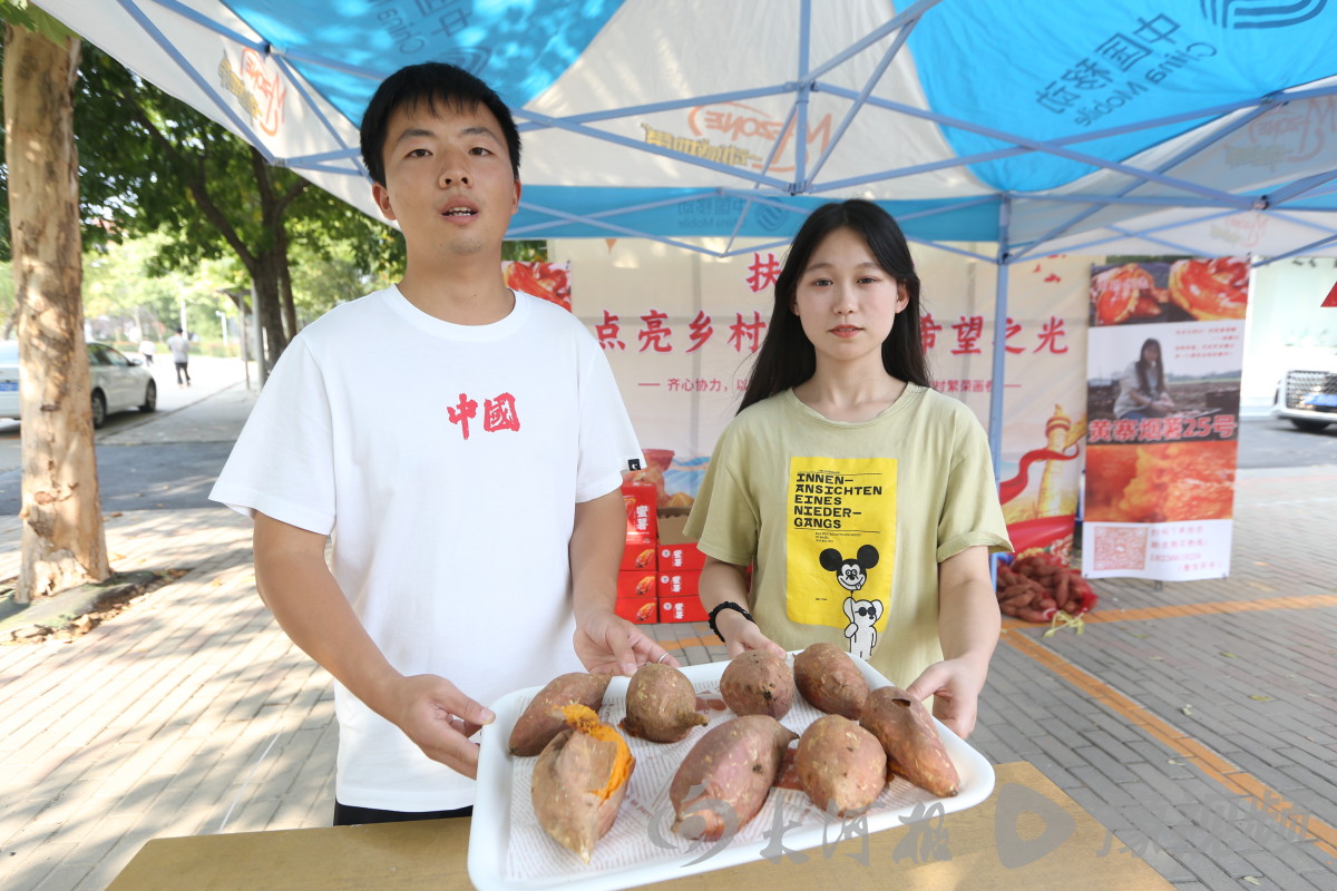 “非常欢迎你们到这里开展助农实训,我们黄寨镇产业丰富,农产品种类繁多,今天直播销售的蜜薯,就是我们的代表性产品之一。我们将为大学生们开展助农实训提供便利条件,希望通过双方合作,把我们的优质农产品推介出去,让乡亲们的收入再有提高。”商水县黄寨镇党委书记郑春来说。