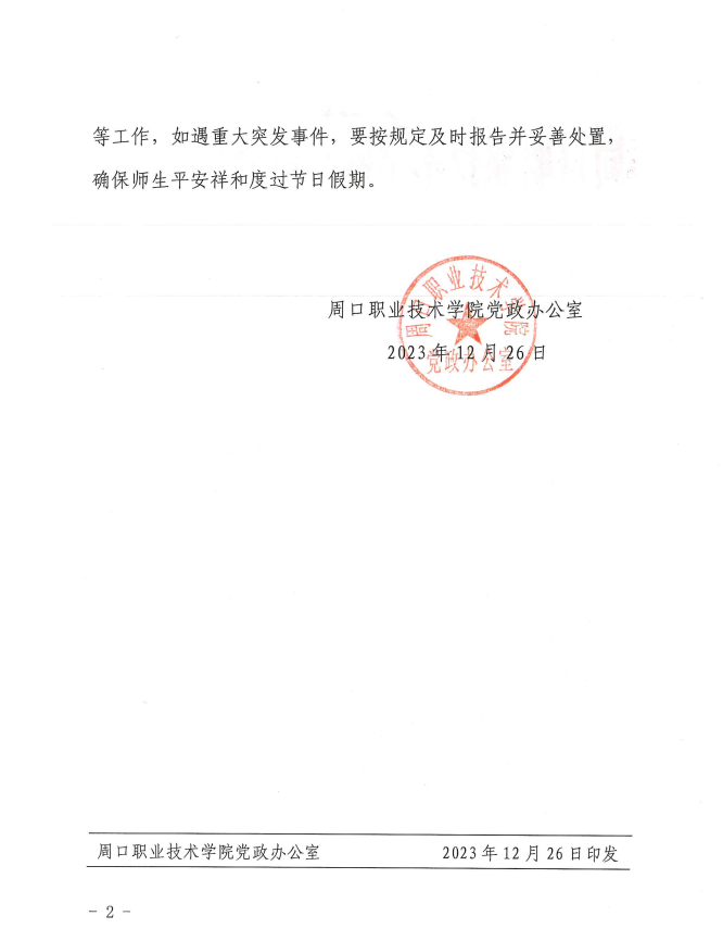 周口职业技术学院党政办公室关于2024年寒假放假及相关工作安排的通知