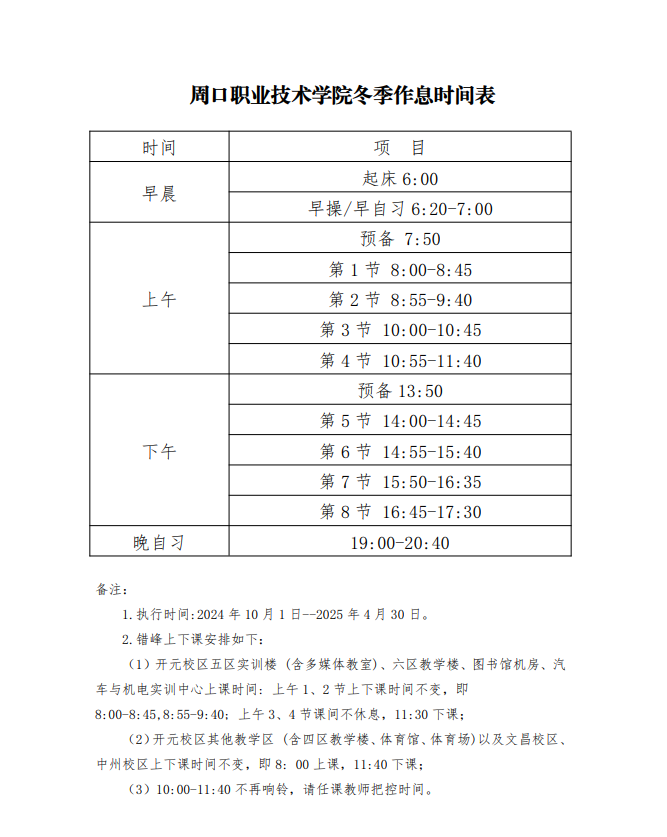 周口职业技术学院党政办公室关于2024年国庆节放假安排的通知