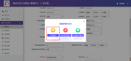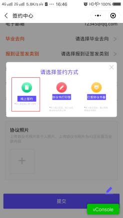 第1步:进入【签约中心】创建【新签约】,就业类别选择【签就业协议形式就业】-【线上签约】