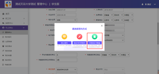 学生在后台点击【查看】已更新签约信息。确认无误点击【确认签约】提交至院校审核。