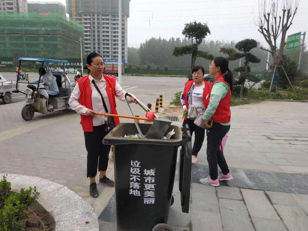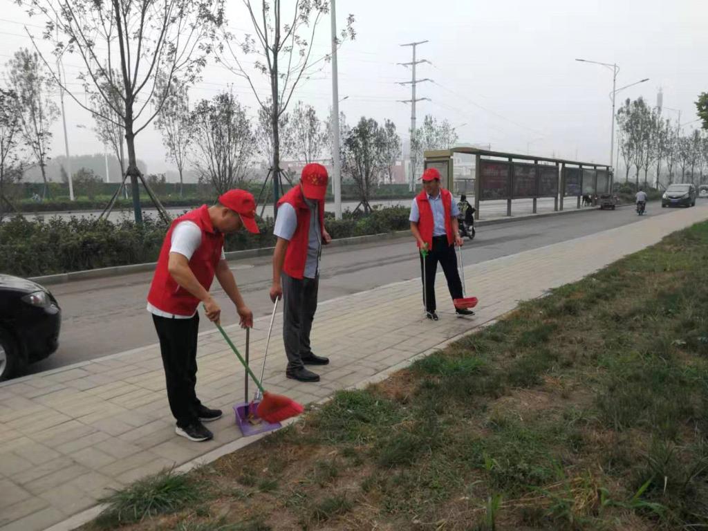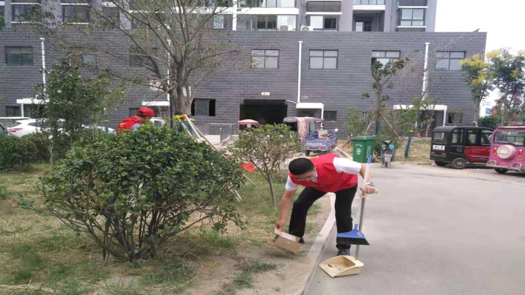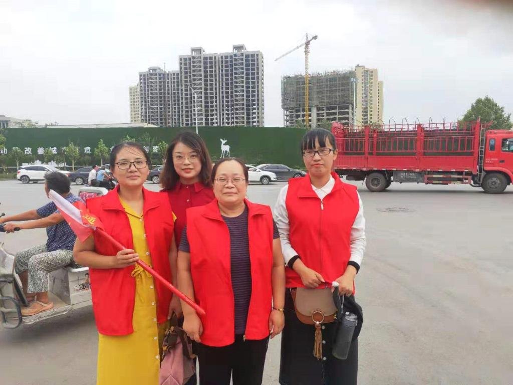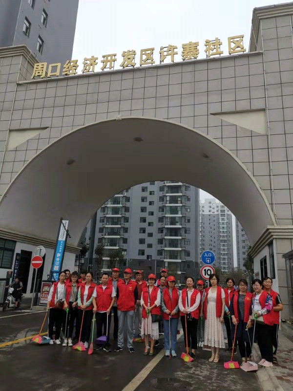 志愿者们按时到达许寨社区,许校长早早来到社区安排部署工作,两部门在社区门前设立了值班岗和卫生流动巡查小组、学校大门口设立了卫生监督岗、并在开元路和五一路路口设立了交通疏导执勤岗。志愿者们各司其职,在许寨社区周边打扫卫生,规范摆放共享单车,引导商户规范停放交通工具,清扫垃圾死角,清理社区内建筑垃圾,铲除小广告,向周边商户宣传创建卫生城市的精神、普及创卫工作要求和卫生常识。