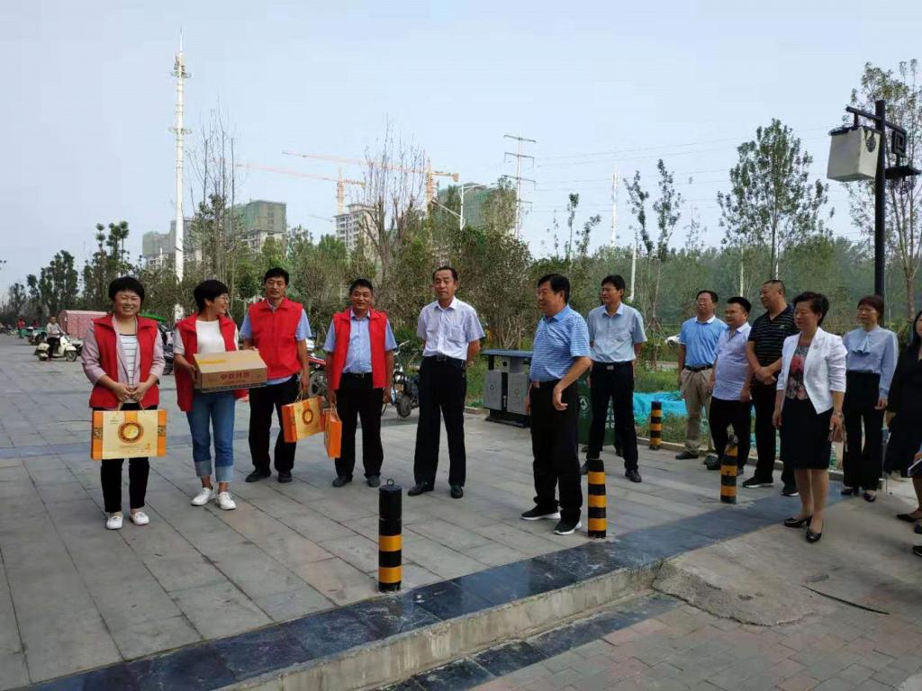 本次创卫执勤恰逢中秋佳节,校领导刘士欣书记、赵振然副书记和李森副书记带领部分学校干部到社区慰问执勤老师,并送来月饼等慰问品。