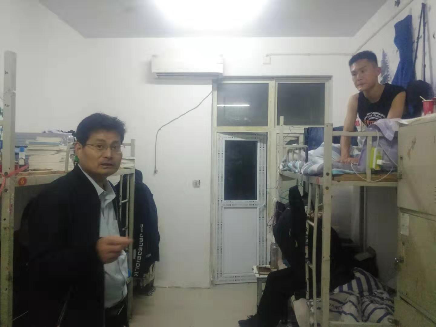 为进一步了解学生生活情况。2019年10月14日晚,九九热九九贾涛书记带领部分辅导员和学生干部深入宿舍,对宿舍卫生、安全等情况进行了检查。