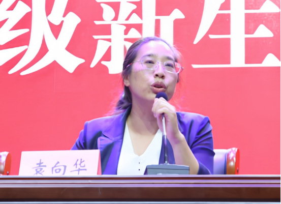 会上,袁向华院长代表全体教师向2024级新生表示热烈欢迎,并介绍了学校和学院的发展概况。她从专业设置、师资力量、教学设施和招生就业等方面,向2024级新生介绍了学院的独特魅力、卓越成就及未来的发展方向。她向新生提出了几点要求:敢于担当、放飞理想;与时俱进、开拓创新;刻苦学习、勇于实践。