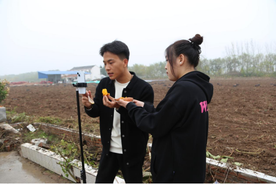 签约仪式后,我校网络营销与直播专业的在校大学生即刻在蜜薯产业园开展直播助农带货,学生手拿新鲜蜜薯,现场演示品尝,用自身体验推介蜜薯口感,用课堂所学专业知识和技能帮助当地群众销售蜜薯,切实助力乡村振兴建设。
