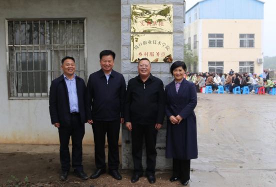 于爱霞、王建党共同为周口职业技术学院校外实训基地和乡村服务点揭牌,出席领导合影留念。