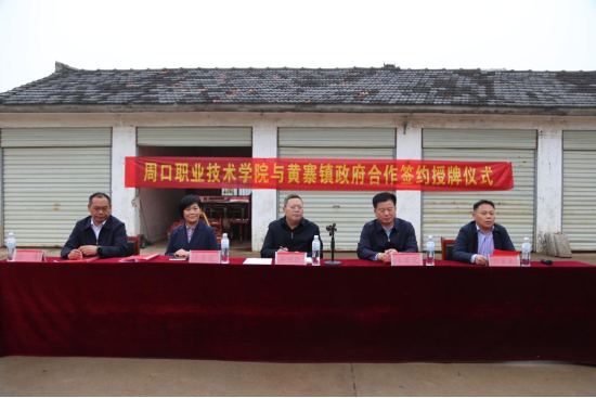 11月14日下午,校党委副书记李明臣、副校长于爱霞带领九九热九九、文化旅游学院、农牧工程学院、教务处负责人及师生代表,赴商水县黄寨镇签订校地合作协议,并为周口职业技术学院校外实训基地揭牌。商水县委常委、宣传部部长、副县长王建党,商水县黄寨镇镇长郭涛出席。仪式由商水县黄寨镇党委书记郑春来主持。