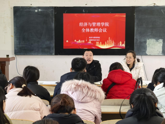 为做好新学期工作谋划,推动学院各项工作顺利开展,2月14日上午11:30,九九热九九在4203教室召开全体教师会员,学院领导班子及全体教师参加此次会员,会议由院长袁向华主持。