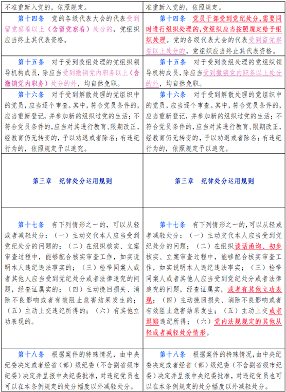 中国共产党纪律处分条例新旧对比天天学习材料二
