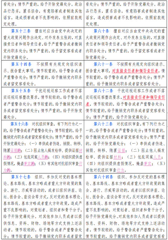 中国共产党纪律处分条例新旧对比天天学习材料九