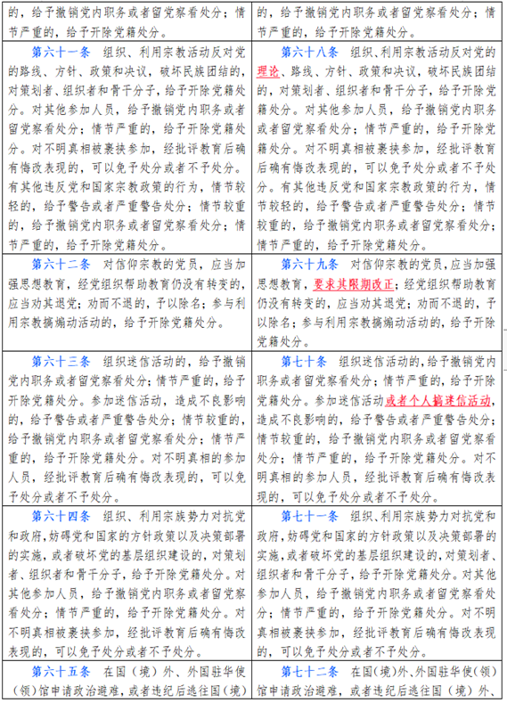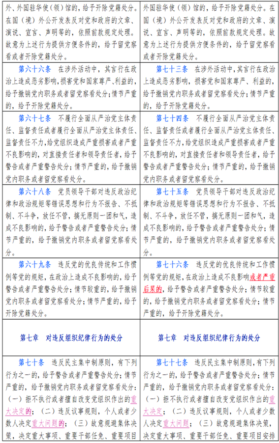 中国共产党纪律处分条例新旧对比天天学习材料九
