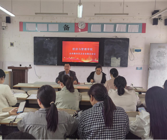 最后,经济与管理党总支书记陈鹏作会议总结:第一,各辅导员要做好学生安全工作,深入了解学生的思想动态,发现异常情况要采取一定的措施,尤其是新生要及时跟进并熟悉学生近况,对存在特殊情况的学生多进行心理疏导;第二,辅导员要认真开展好每一次班会并做好相关的班会记录;第三,辅导员要做好学生离校、留校等长期坚持。