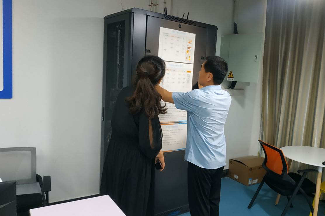 为落实省教育厅关于确保高校实训室安全运行的相关文件要求,经管学院书记陈鹏、院长袁向华、办公室主任王金凤、实训中心主任刘益民一行,对经管学院实训室进行了全面安全检查。陈鹏书记、袁向华院长指出要对临期的灭火器进行全面更换,确保实验室消防安全,同时对实验室电气设备进行了全面的检查,也对卫生提出了进一步的要求。经管学院在大家共同努力下,力争实验室管理工作能够更上一个台阶。